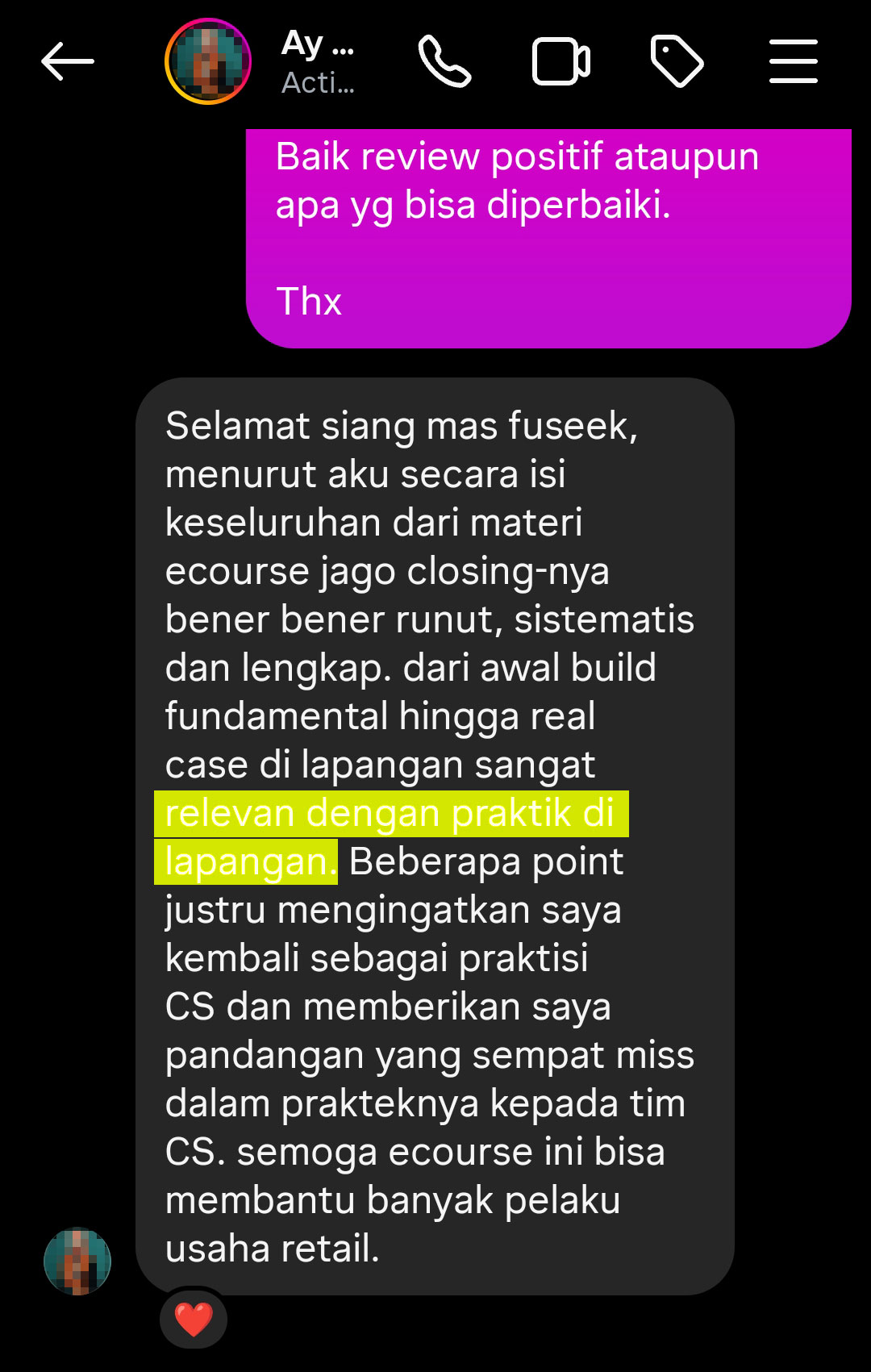 Bukan sembarangan testimoni, ditulis oleh mba Aini, praktisi & konsultan CS property 🏬