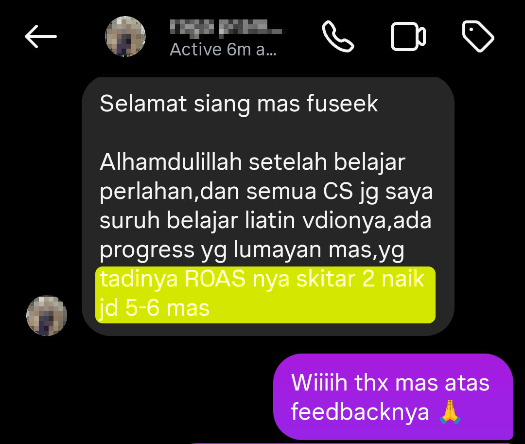 No bokis, bro Raga ini dm kalo ROAS dia naik dari 2 jadi 5-6x setelah praktek materi di e-course 📈